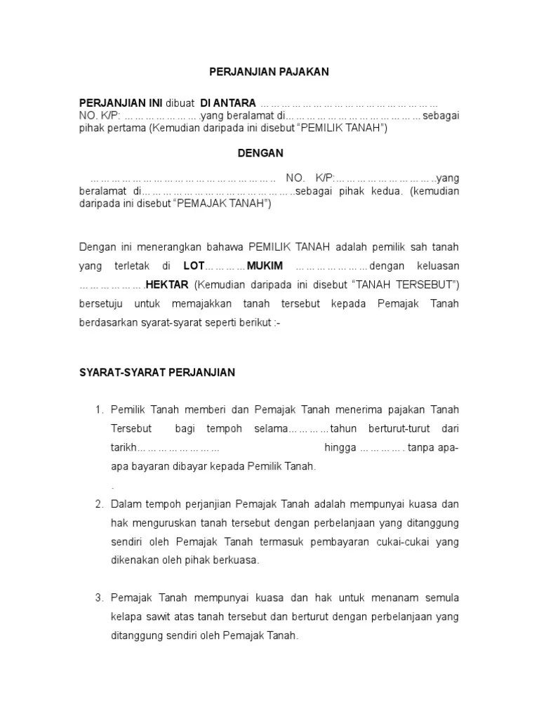 Contoh Surat Pajak Tanah Malaysia - Surat Aku Janji Jualan Tanah Di Malaysia